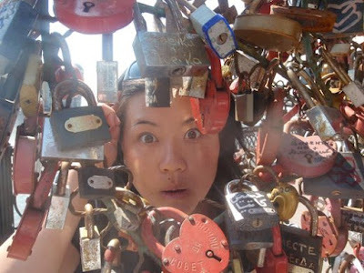 It is not uncommon to see newlyweds on the bridge, and even brides in their wedding gowns, kissing just before clicking down their padlock of love on Luzhkov Bridge.