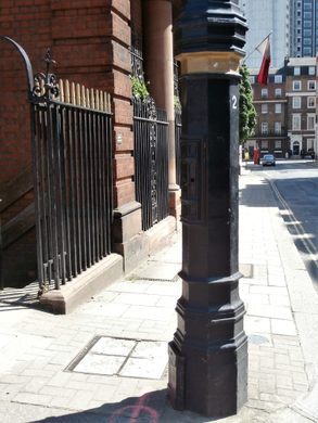 One such dead letter box was an inconspicuous lamp post in Audley Square, just outside the University Women’s Club at No. 2. Starting in the 1950s, agents would leave their documents behind the small door to the rear of the post. To indicate there was a message waiting, a chalk mark was made near the base.
