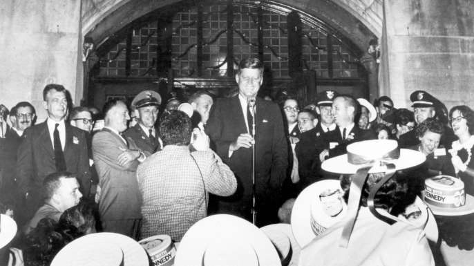At 2 a.m. on October 14, 1960, Senator John F. Kennedy arrived at the University of Michigan near the end of his presidential campaign. The candidate had planned on heading straight to bed, but when he noticed that a crowd of 10,000 students had gathered to greet him, he stepped behind a microphone and gave an unscripted speech. “How many of you who are going to be doctors, are willing to spend your days in Ghana?” he asked. “Technicians or engineers, how many of you are willing to work in the Foreign Service and spend your lives traveling around the world?” Kennedy wouldn’t officially call for a “peace corps of talented young men and women” until two weeks later, but his late-night challenge is now cited as the program’s founding moment. The University of Michigan in Ann Arbor even has a plaque on its campus marking the spot where Kennedy “first defined the Peace Corps.”