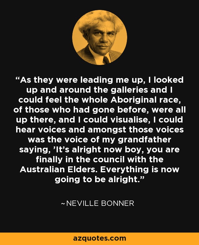 In 1960 Bonner moved to Ipswich where he became associated with the One People Australia League (OPAL), a moderate Aboriginal rights organisation. He served as one of the league’s directors for several years and was the Queensland president in 1970. Following the 1967 referendum, which amended the constitution to give the Commonwealth government the power to make laws in relation to Aboriginals, Bonner joined the Liberal Party. In 1971 he became the first Aboriginal person to sit in the Commonwealth parliament when he was chosen to fill a vacancy in the Senate caused by the resignation of a Liberal senator for Queensland. He was subsequently returned at elections held in 1972, 1974, 1975 and 1980.
