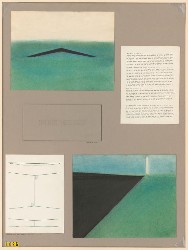 The competition garnered more than 1,400 submissions, so many that an Air Force hangar was called into service to display all the entries for the judging. Since all submissions were anonymous, the eight-member jury made its selection based solely on the quality of the designs. It ultimately chose entry number 1026, which it found to be “an eloquent place where the simple meeting of earth, sky and remembered names contains messages for all.”