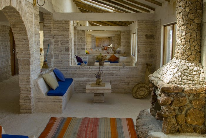 Anyone arriving to visit this exotic part of the world is in for a real treat and a stay in one of the world's most unique hotel experiences. Due to a lack of conventional construction materials in this area, many of the hotels here are built entirely with salt blocks cut from the Salar itself. The most famous one is called Palacio de Sal, Spanish for "Palace of salt".