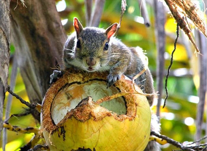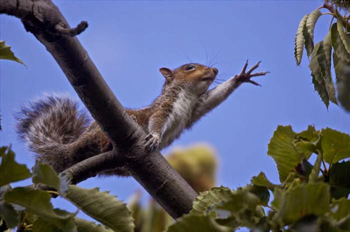Tree squirrels are commonly seen everywhere from woodlands to city parks. Though they are terrific climbers, these squirrels do come to the ground in search of fare such as nuts, acorns, berries, and flowers. They also eat bark, eggs, or baby birds. Tree sap is a delicacy to some species.