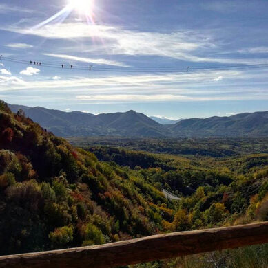 It takes at least a half hour to cross the the bridge, and it certainly isn’t for the faint of heart. Glancing down at the gaps between the steel steps reveals nothing but empty space that stretches down to the trees far below. The journey is worth any brief bouts of altitude-induced fear, though. At the end, brave visitors are rewarded with a glass platform boasting panoramic views of the scenery and spectacular vistas of the historic village Sasso di Castalda.