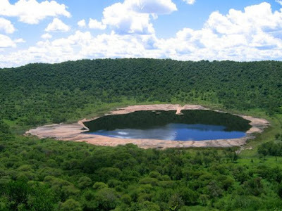 Today, a blind salt lake lies at the bottom of the crater, and the area is surrounded by dense tree growth. This natural wonder is a feature in the region that even a fair amount of locals aren’t unaware of. Yet it is clear that early humans in the area knew of the crater site. Stone Age implements and pottery have been discovered at the crater rim, where deposits of salt were collected by these early inhabitants from the lake at the bottom of the hole.