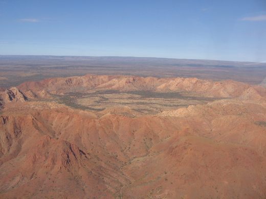 Welcome to a spectacular impact crater in the rugged heart of Central Australia.This 3-mile-wide bowl in the middle of the vast flatness of Central Australia is a an unexpected sight. More than 140 million years ago, a comet or asteroid hit the surface of the earth in the Red Centre, creating a giant impact crater. Travelling the unsealed Mareenie Loop from Alice Springs to Kings Canyon, you can see the remnants of what must have been a jolt of unimaginable scale.