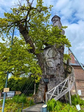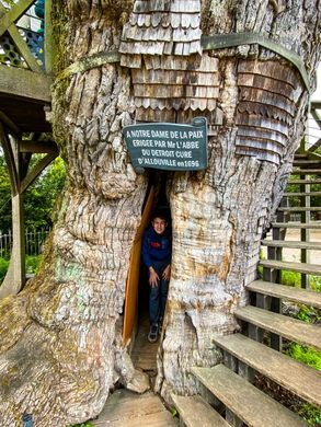 In the 1600s, disaster struck. The then middle aged (roughly 470-year-old) oak tree, was struck by lightning, burning right through its center and hollowing out the trunk. However, not only did the tree survive this fate, but the newly hollowed tree came to the attention of the local Abbot Du Détroit and father Du Cerceau. Deciding they wanted to build a different kind of sanctuary they began building a shrine to the Virgin Mary directly into the hollow of the tree. Later another small chapel and a stair case climbing the outside of the tree was added.