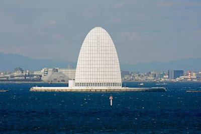 The Tower of Wind sits above the midpoint of the tunnel, which lies about 131 feet below the surface. Designed by the acclaimed Pritzker Prize-winning Japanese architect Toyo Ito, the two elegant towers look like domes from some angles and wind-filled sails from others. Each tower captures the almost constant winds that blow across the bay, supplying the tunnel below with fresh air.