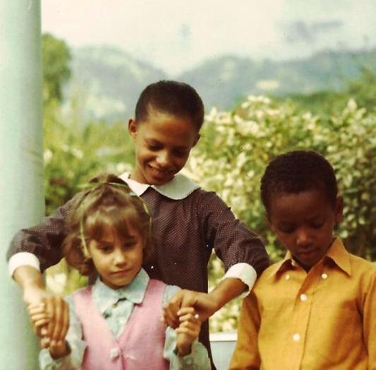 Me at 7 in Jamaica with neighbors Madge Henriques and Patrick Taylor