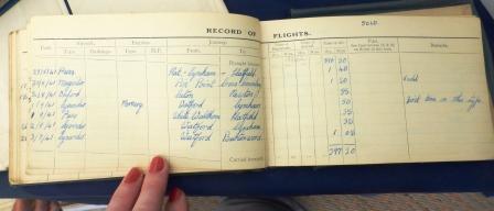 The highlight of the conference, for me, was probably Candy Adkins’s talk about her ATA pilot mother, Jackie Moggridge (nee Sorour). Candy had brought along a ton of her mother’s memorabilia – her original logbook was amazing. For fans of Code Name Verity, here’s the page where she first flies a Lysander – there are “Puss” flights (as in Puss Moth) also on the page! (I took a ton of pictures of entries in this log book.)