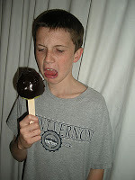 The Bad Caramel AppleLast month, I found a recipe for caramel apples. It looked good, so, even though it broke my rule that all recipes should be quick and easy, I printed it out. Tonight, I decided to make it.I followed the recipe exactly--including the part where it said the caramel should reach 335 degrees. I was wondering why it smelled a little burnt and why it looked much darker than most caramel. Hmmm. Finally, before I dipped all the apples in, I decided to check that cooking blog again. Sure enough, the 335 degrees was a mistake. It should have said 235 degrees.