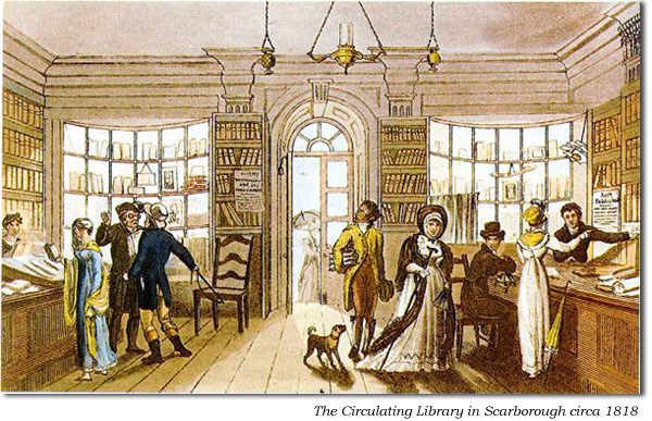 Austen pokes fun at this notion that libraries were wicked places when she has Mr. Collins turn up his nose at a book that has obviously come from a circulating library: