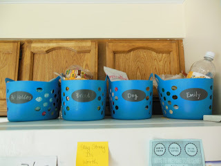 I used Dollar Tree bins and chalkboard labels to contain the clutter.