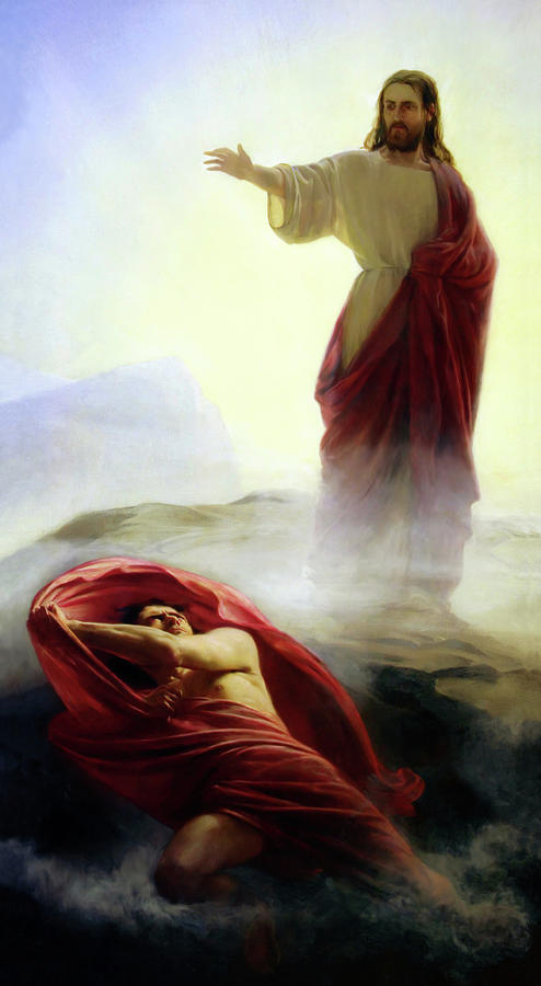 My 18 year old chose this Carl Bloch painting of Christ casting out Satan