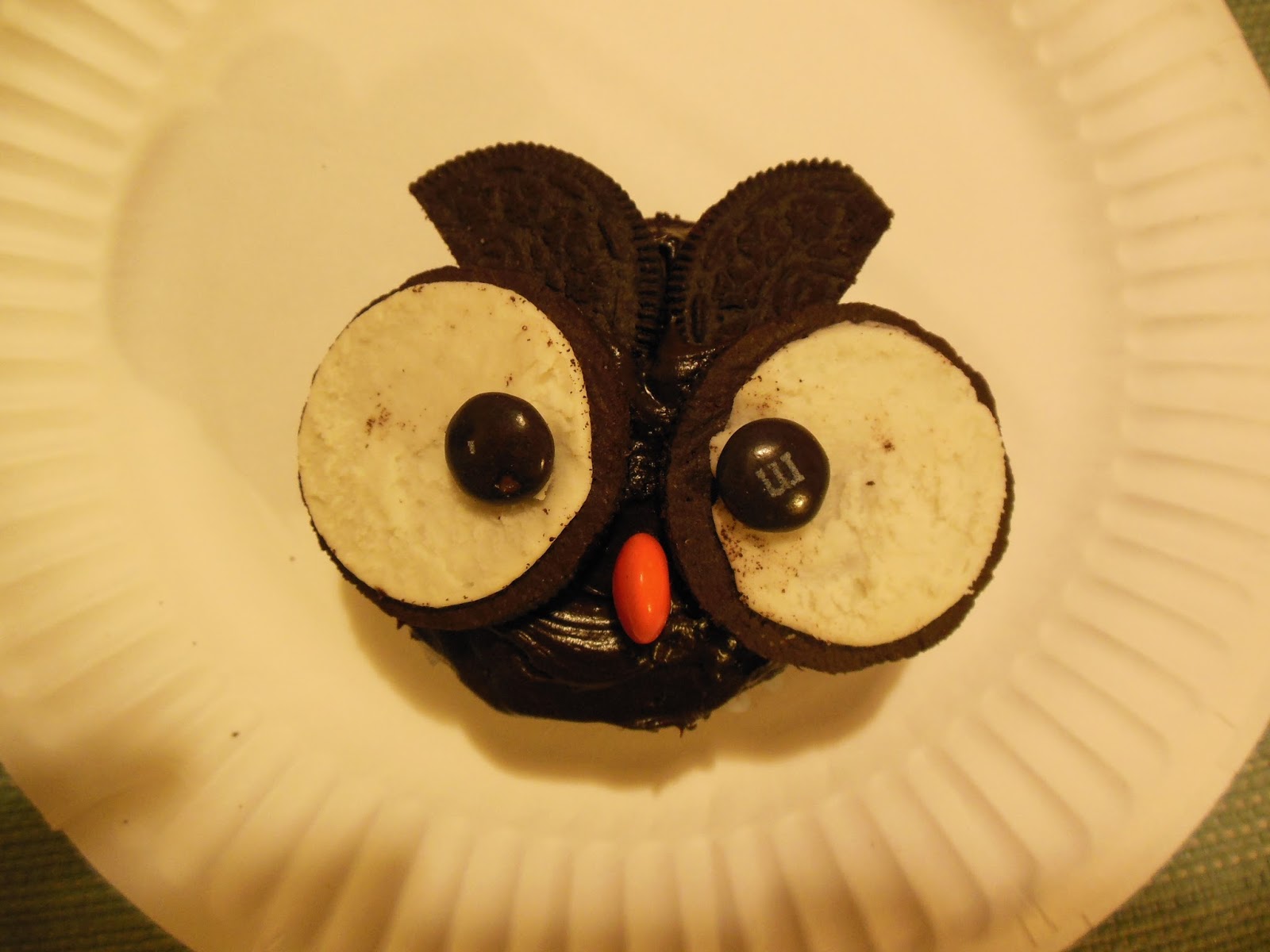 For her birthday cake, we made and ate owl cupcakes, which I found in Family Circle magazine . Looking at this picture, you can tell why I don't have a food blog. It may not be picture perfect, but we had fun.