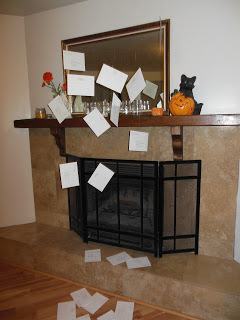 I got this idea to hang up Hogwarts letters in front of the fireplace from buzzfeed. I figured it was a good way to use up all the extra envelops from the graduation announcements, but I added my own little twist. I addressed the letters to the partygoers and put letters or Harry Potter quotes in all the envelops.