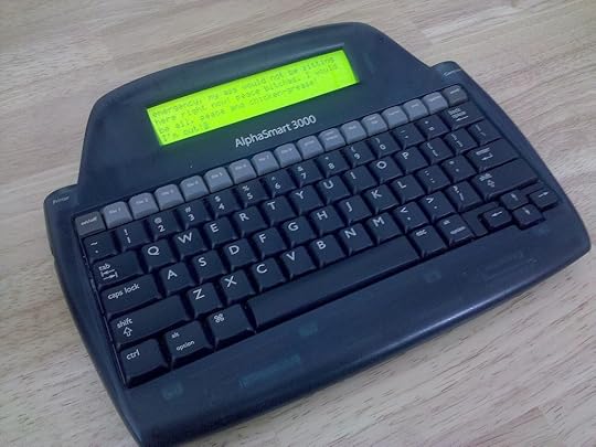 3. Avoid perfectionism. This is a big one for me. I've always heard that I need to quit editing myself when I draft, but it's just so hard not to. One tool that's really helped me is my Alphasmart 3000. It's a little word processor that's more like a big calculator than a laptop. I write on it when I'm drafting scenes, and then I download what I wrote into my regular computer. I'll bet you're thinking I'm crazy right now. I mean, the screen is soooo small, isn't it? Well, that's one of the benefits. You can't edit much of what you write, so you just have to keep going forward. Plus, it's cheap if you buy one used, it runs on two AA batteries, and the batteries last for months.