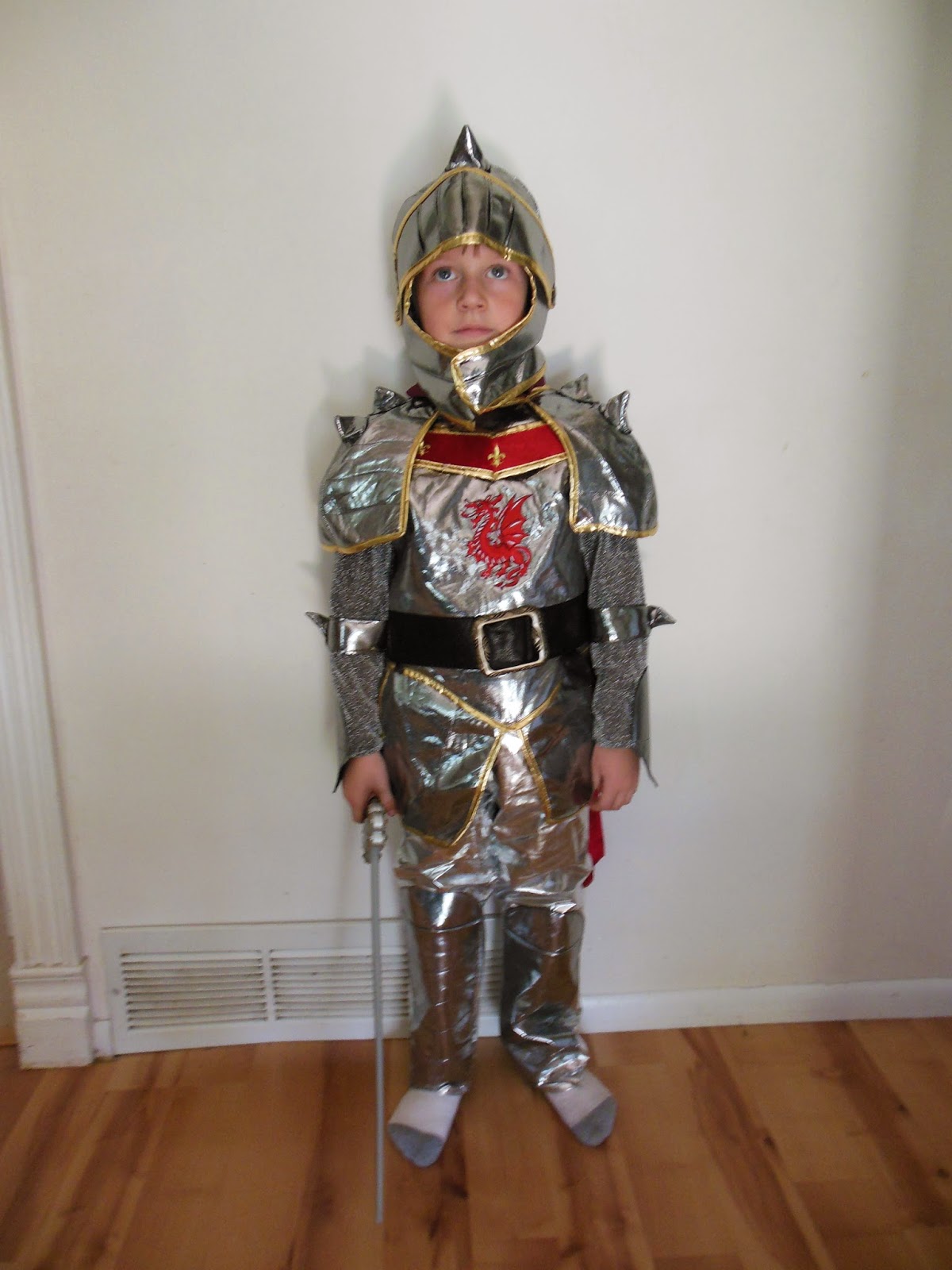 Another great thing about fall is Halloween. I have been on the look-out for a good knight costume for years, and I finally found one last month at Costco. Whoohoo. Here's the preview: