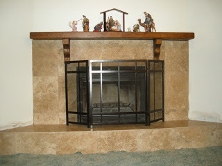 Here's the before of our fireplace. Lovely, right? I've always had an affinity for fake stone.