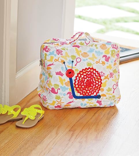 June's snail face suitcaseWhen the call for submission for the ‘Little One-Yard Wonders’ book was posted in early 2012, the call basically stated they were looking for children’s designs using one yard only of fabric. I began thinking back to when I was a child. I asked myself what was my favorite accessory? The answer became so clear to me—it was a small-sized suitcase with a zipper closure that I used for sleepovers, slumber parties, and campouts for several years until it wore out. I sketched out the suitcase and then wanted to add something special to the front. I love rickrack trim and buttons, and I envisioned a snail’s shell made from sewing rickrack in a circular pattern. I added a button head, etc., and came up with the project that ended up in the book, my ‘Snail Face Suitcase.’Sometimes when I’m taking photographs to post on my blog I’ll see something in nature that calls to me or touches me, such as a bird or a flower. Then I try to incorporate that element into an ornament or pillow or small table quilt or wall hanging.