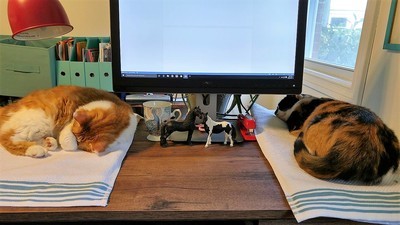 Photo is of Miss Gracie (our latest rescue kitty and our new Betta fish, Dexter.