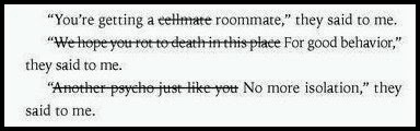 It really is, because the whole story is narrated by Juliette and she likes to cross out words. In fact, she is obsessed with words, and has a hard time not telling us everything she is thinking, (even if she crosses out her true thought and replaces it, Mafi leaves it with the line through it for us to see). This is so cool, because the reader gets glimpses into Juliette's brain that Juliette doesn't want anyone to see. Or does she?