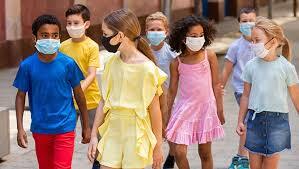 youngsters running around with their masks on,