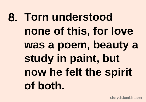 I wrote Torn as a character who really doesn’t understand his own feelings. He is a monster, his old life has been obliterated, he has no conception of who or what he was before arriving upon the island, and yet suddenly he feels love, affection. The feeling is completely mysterious, completely alien, and Torn really does not understand what he is experiencing. For him it is something terrifying, but when someone like Torn is afraid, violence and...