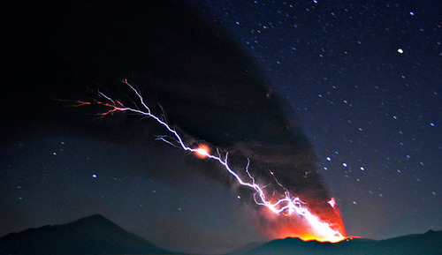 A dirty thunderstorm (also, Volcanic lightning) is a weather phenomenon that occurs when lightning is produced in a volcanic plume. A study in the journal Science indicated that electrical charges are generated when rock fragments, ash, and ice parti...