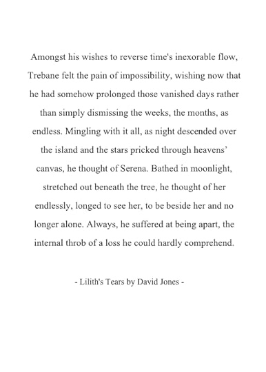 Loss and loneliness in on the island in Lilith’s Tears. At the very start of the book, after the storm, Trebane struggles to comprehend the scale of his loss, how everything and everyone could be gone. Little does he suspect that this is only the beginning.