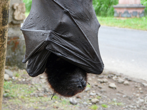 The giant golden-crowned flying fox (Acerodon jubatus), also known as the golden-capped fruit bat, is a rare megabat and one of the largest bats in the world. The species is endangered and is currently facing the possibility of extinction because of poaching and forest destruction. It is endemic to forests in the Philippines.