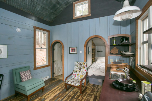 17. This quaint cabin was built with a unique combination of reclaimed metal and wood. As one of the cabin rentals at Blue Moon Rising, an ecotourist retreat in Garrett County, Maryland, Kaya offers a beautiful and cozy spot for a getaway. Nestled among the pines, the cabin is close to the community fire pit.