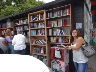 Carissa and I discovered something we'd never noticed before - an outdoor community bookshelf. It's just some shelves tacked onto the side of a building. Residents drop books off there and trade them for books they want to borrow. No one attends it. It's on the honor system. I suggested we create something like that in Santa Clarita, and Carissa said, "They'd all get stolen," which is probably true.