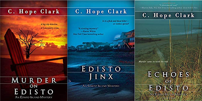 I'm a fan of C. Hope Clark's EDISTO ISLAND MYSTERIES series. Set on Edisto Island in South Carolina, Callie Morgan is a former detective with the Boston P.D. After her husband was murdered by the Russian mafia, Callie and her son, Jeb move to the quiet beachfront town of Edisto hoping for a new life. But before Callie has a chance to settle in, murder happens and local law enforcement call on Callie for help.