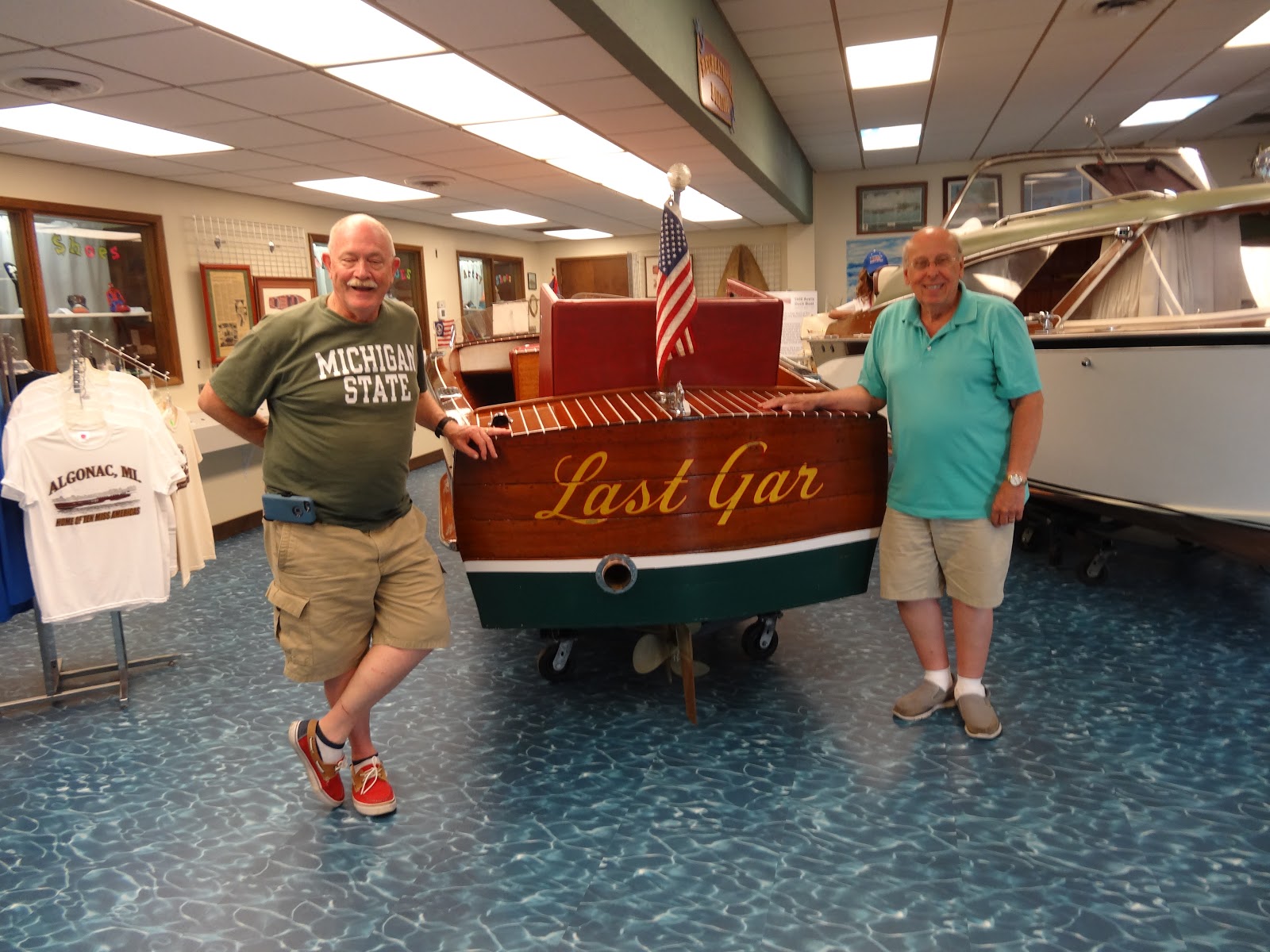 Later in the day, Carissa and I headed over to the Algonac Community Museum where Joan and Bud told us all about the town's history and showed us photos and shared stories. We had a great time with them, and Joan convinced us that tomorrow we have to visit Harsens Island, where she grew up, just a ferry ride across the river (in Michigan, not Canada.) After that we went across the street to the Maritime Museum and met George and Terry, who debated about walleye and perch. What a funny pair they are! We learned all about Chris Craft and Gar Wood, two famous boat builders from the early 1900s.