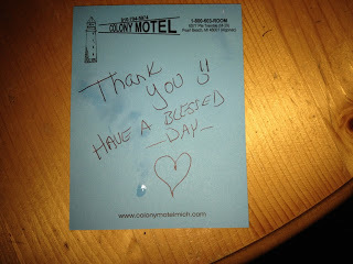 We rented a room at the Colony Motel. I had spoken to the owner, Debbie, several times over the past year about my plans to come. She was ready for us. Had the room's air conditioner running, the fridge stocked with cold water bottles and sodas, and even left us a sweet note. She charged us a very reasonable fee. The room is roomy and rustic.