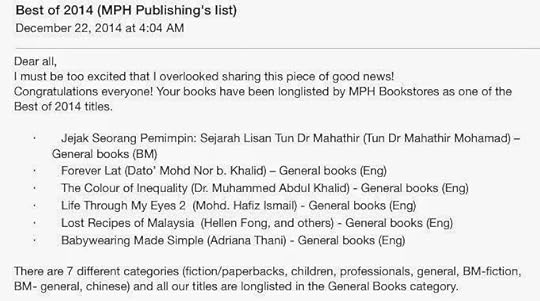 A few days ago, I received a really good email to tell me that Life through my eyes 2 is one of the Best of 2014 book in MPH Bookstores! Wow!