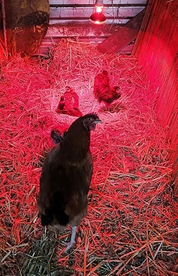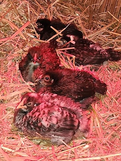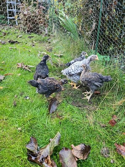 So, instead here are some photos Eldest Daughter took yesterday of the chicks, now five-and-a-half weeks old and looking for all the world like baby dinosaurs. She let them out for the first time to eat some grass, and it made them happy little bunnies (insofar as one can tell their moods, natch).