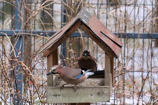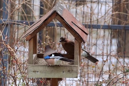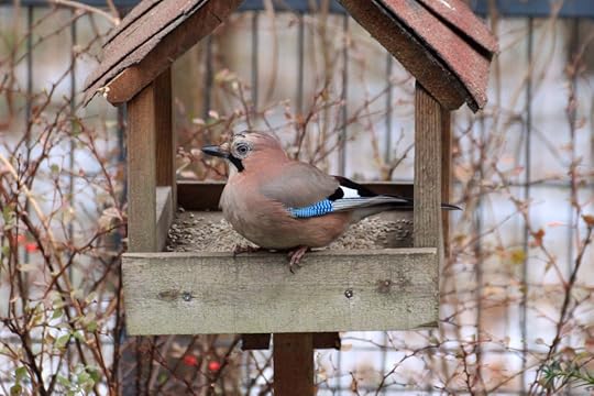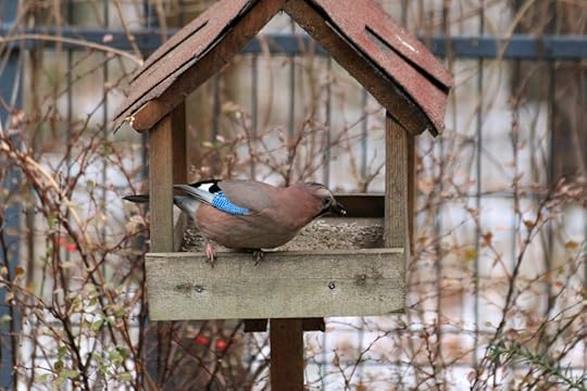 One of the garden jobs when the seasons change is to put the bird stand in the front garden and load it up with seeds, far enough away from the windows not to scare the birds, but close enough that I can photograph them. I put the feeder out yesterday and this morning took these shots. We usually get a range of birds, but today the blue jay mafia came from the forest and monopolised the supply. I don’t mind; soon the tits and siskins and robins and bullfinches and woodpeckers will turn up because these birds also can’t resist the bribe of free food