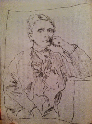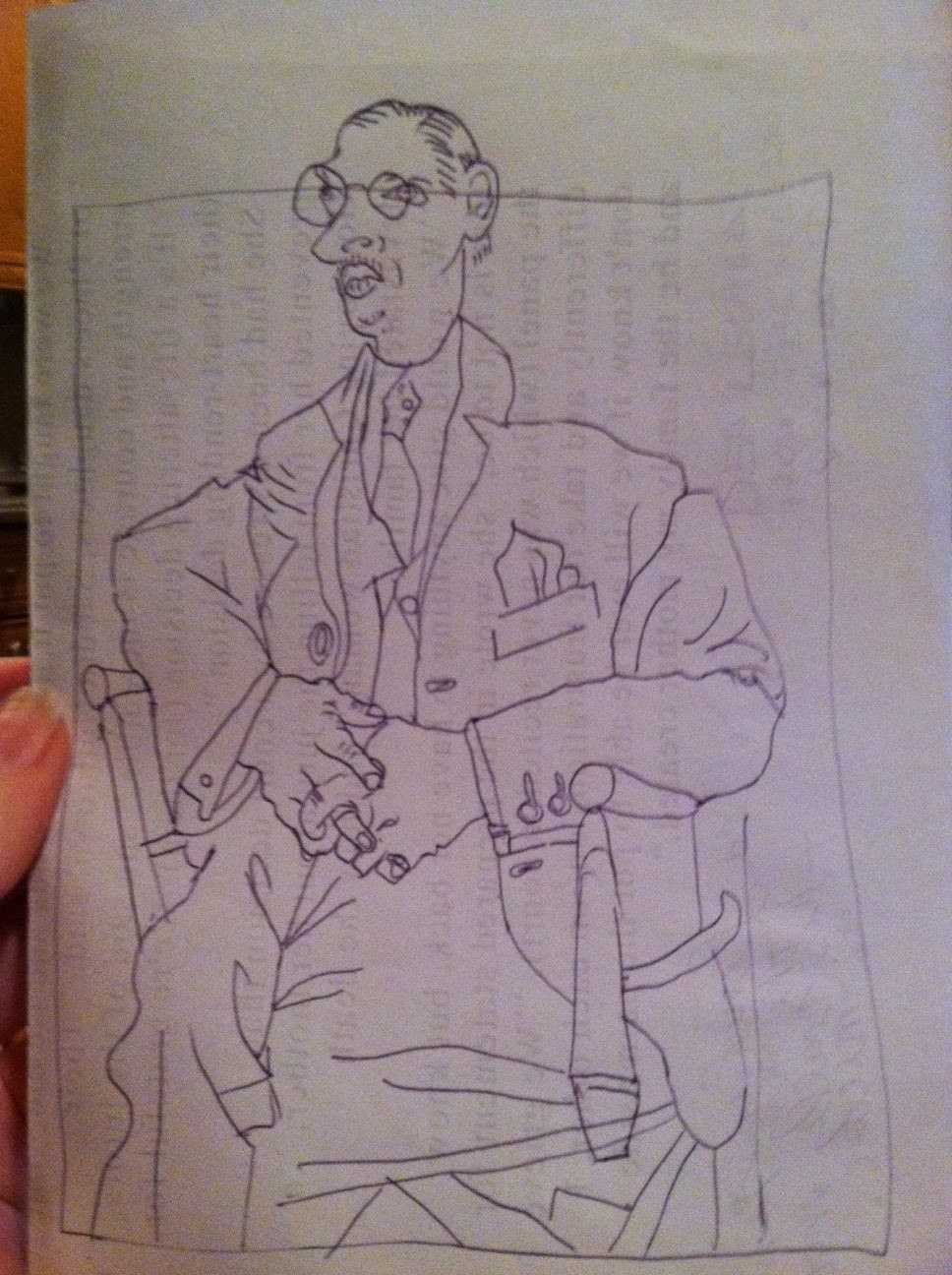The book tells us there are ways to shift from left brain thinking to right brain. The first way told us to draw a picture upside-down. To be exact, to look at a picture that is upside-down, and to recreate it starting at the top of the page, which would actually be the bottom of the image. Here is the picture from the book; a drawing by Picasso of Igor Stravinsky: