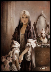 This is from her very humble bio: "Creating amazing works of original art at a prolific rate is what I do best. My clients come to me with a variety of artistic needs and I collaborate with them to create exciting finished works of art. I have performed numerous private commissions, all done quickly and to the satisfaction of the client. I work mainly in various releases of Photoshop with a focus on cutting edge sci-fi/fantasy, including the steampunk, space opera and paranormal romance genres. I enjoy focusing on character and figurative conceptual art. In addition to my design and production skills, I am fluent in German."