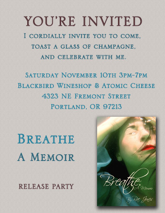It is the official launch and publication of Breathe (my memoir) and I cordially invite you to come, toast a glass of champagne, and celebrate with me.