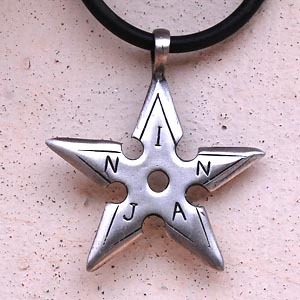 A shuriken (ninja throwing star) pendant on a faux leather choker necklace