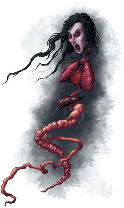 Penanggalan in Malay is literally translated as 'detachment.' A penanggalan is a disembodied, flying female head trailing internal organs. It can use its entrails like tentacles to grab and constrict prey. Considering the human body has over 25 feet of intestines, that is a lot of manoeuvrability!
