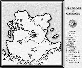 The second map is a close-up of the Kingdom of Cadonia. I’ve only noted the major cities/landmarks that are important within the overall story.