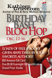 To celebrate this momentous event, Kathleen is giving away presents instead of receiving them. All you need to do is comment on each participating blog listed below. On Saturday, December 17th, Kathleen will pick winners for the books, gift cards, and the grand prize of a Kindle!