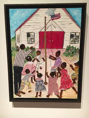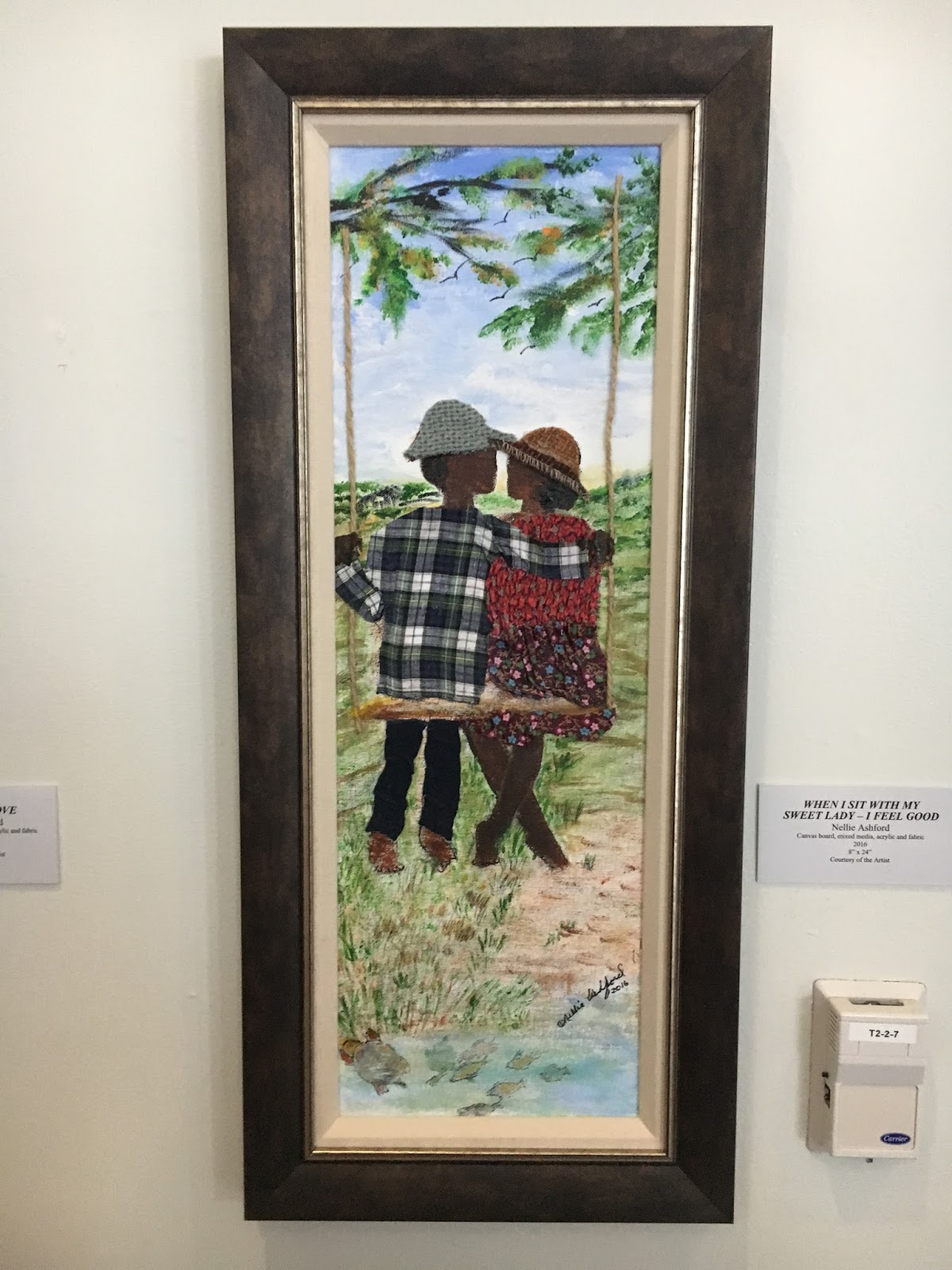 This museum was speculator in comparison to the Bechtler. We loved everything we saw, but the most impressive was the work of Nellie Ashford. In her paintings, Ashford uses actual fabric rather than paint for the clothing of her subjects. She also adds rope and other material. The effect is stunning, as you can see below. I loved every one of her pieces.
