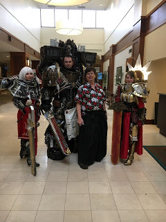 4. Panels. I was on several panels. The funnest panel was one I was on with Todd McCaffrey, Mark Wandrey, Kim Headlee, Monica Marier, and Charity Ayers. For this panel, the audience provided a person, a place, and a thing. Todd started a story and then dumped it to the next person on the panel who added to it, and then dumped it to the next. Repeat. I've never done anything quite like this, but it was hilarious. We ended up with a story about a great white shark named Bongo who loves the music of bongo drums and the taste of monkeys. I also did panels on romance in fantasy, the making of a good adventure, and the use of religion in fantasy and science-fiction. In addition, I helped Allen Wold with his writing workshop about getting a story started. Fun times.
