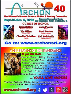 I will be in the merchant's room for some of the time, trying to sell my novels. Wish me luck on that, and I'll have a full report in this spot next week.