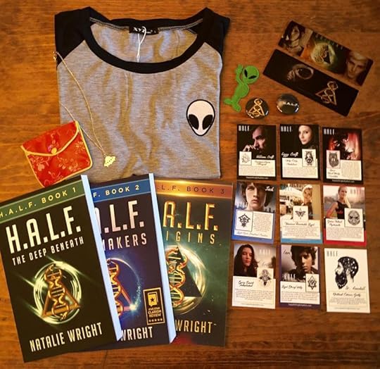 H.A.L.F. series + branded book swag, including metal bookmarks,